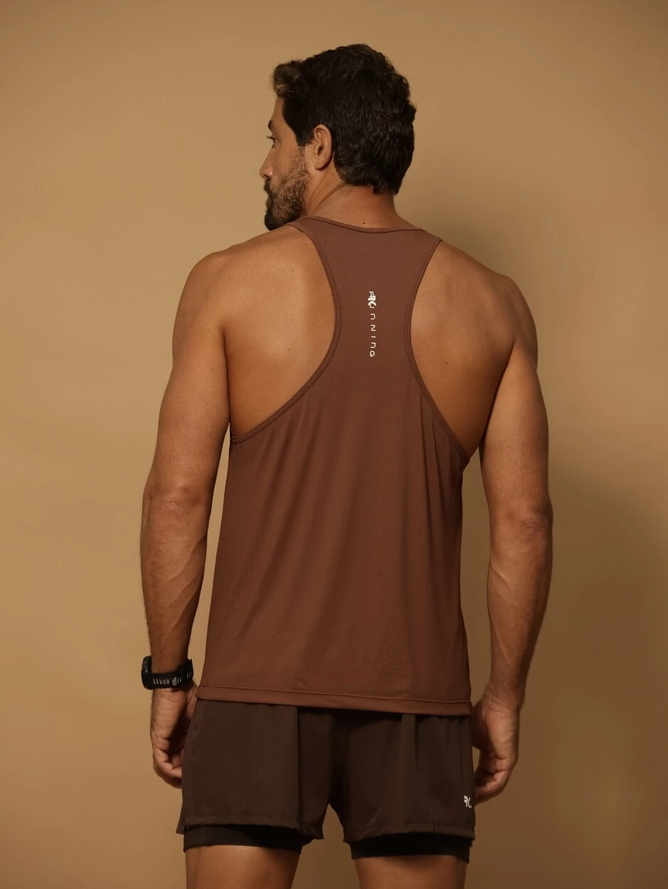 A Regata Masculina UV Act Run Track foi criada para proporcionar leveza, respirabilidade e total liberdade durante corridas e treinos intensos. Confeccionada em na cor marrom, é respirável e possui proteção UV 30+, oferecendo ventilação e conforto térmico durante a prática esportiva. Sua modelagem nadador favorece a mobilidade dos ombros e braços e, com cavas amplas, acompanha o corpo com naturalidade durante o movimento. Leve e funcional, é uma peça essencial para treinos e corridas de média e longa distância. O design esportivo é complementado por estampas refletivas aplicadas na frente e nas costas.